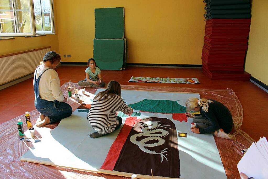 An diesem Wochenende halfen Kinder und Eltern fleißig beim Kulissenbau.