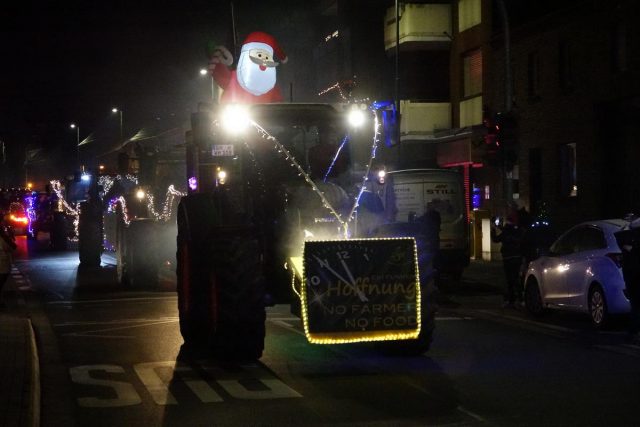 Wie in den drei Jahren zuvor hatten die Landwirte ihre Traktoren u. a. mit Lichterketten oder Nikoläusen weihnachtlich geschmückt.