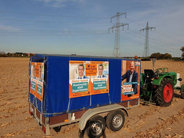 Um nochmals zur Wahl aufzurufen, hat sich die CDU-Blatzheim etwas besonderes ausgedacht. Mit Trecker und Anhänger wollen sie zur Stichwahl aufrufen.