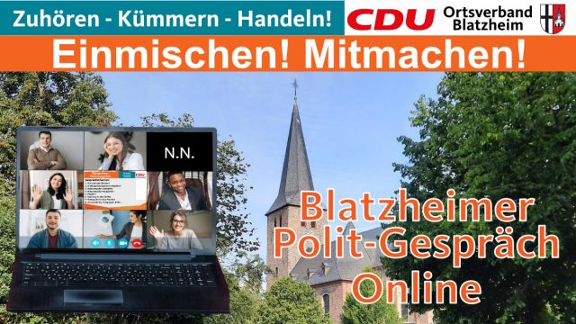 Das Blatzheimer Polit-Gespräch findet per ZOOM statt. Zoom-Meeting beitreten: