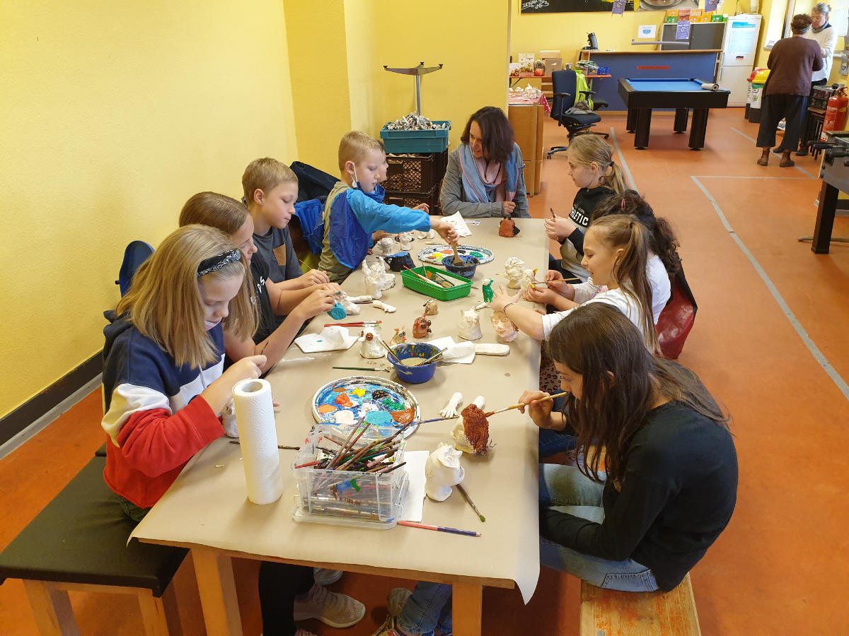 Nachdem sie gebrannt worden sind, konnten die Teilnehmer jetzt im Kinder- und Jugendzentrum DOMIZIEL gemeinsam mit der Künstlerin Andrea Harrenkamp farblich gestalten. Aus manchen Figuren wurden sogar schöne Stockpuppen.