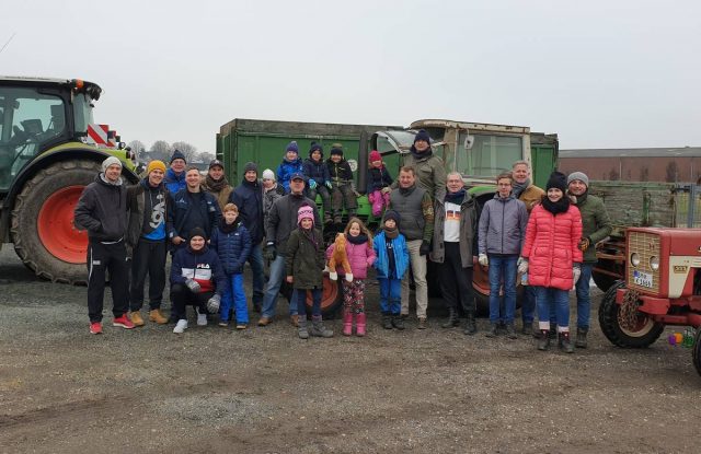 In diesem Jahr war das Sammlerteam sogar mit drei Traktoren unterwegs. So konnten sich die Helfer auch eine Pause mit Kakao, Kaffee und Glühwein erlauben, bevor die rund 300 Bäume ins Müllfahrzeug gepresst wurden, um sie der Kompostierung zuzuführen.