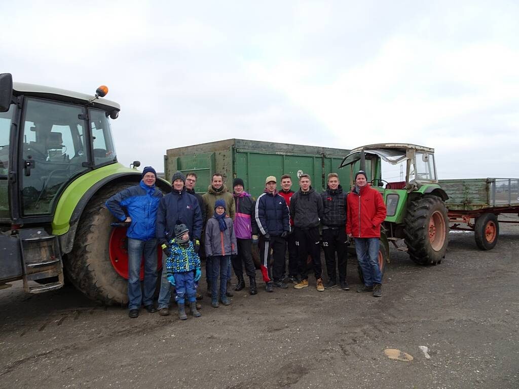 Mit zwei Treckern, gesteuert von Thomas Lewicki und Klaus Ripp, waren die alten „JU-Veteranen“ und junge Nachwuchskräfte vom Betreuerteam der Kinderfahrt jetzt wieder unterwegs und sammelten noch mehr Bäume als gewohnt. Direkt im Anschluss wurden die Bäume ins Müllfahrzeug gepresst, um sie der Kompostierung zuzuführen.