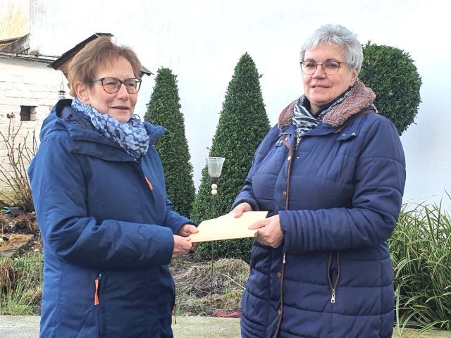 Uschi Weingarten und Marlies Schlang vom Frauenkreis übergaben jetzt 360 Euro, die aus den Kollekten der Frauenmessen in 2021 stammen, an Gerda Steffens von CuraCon.