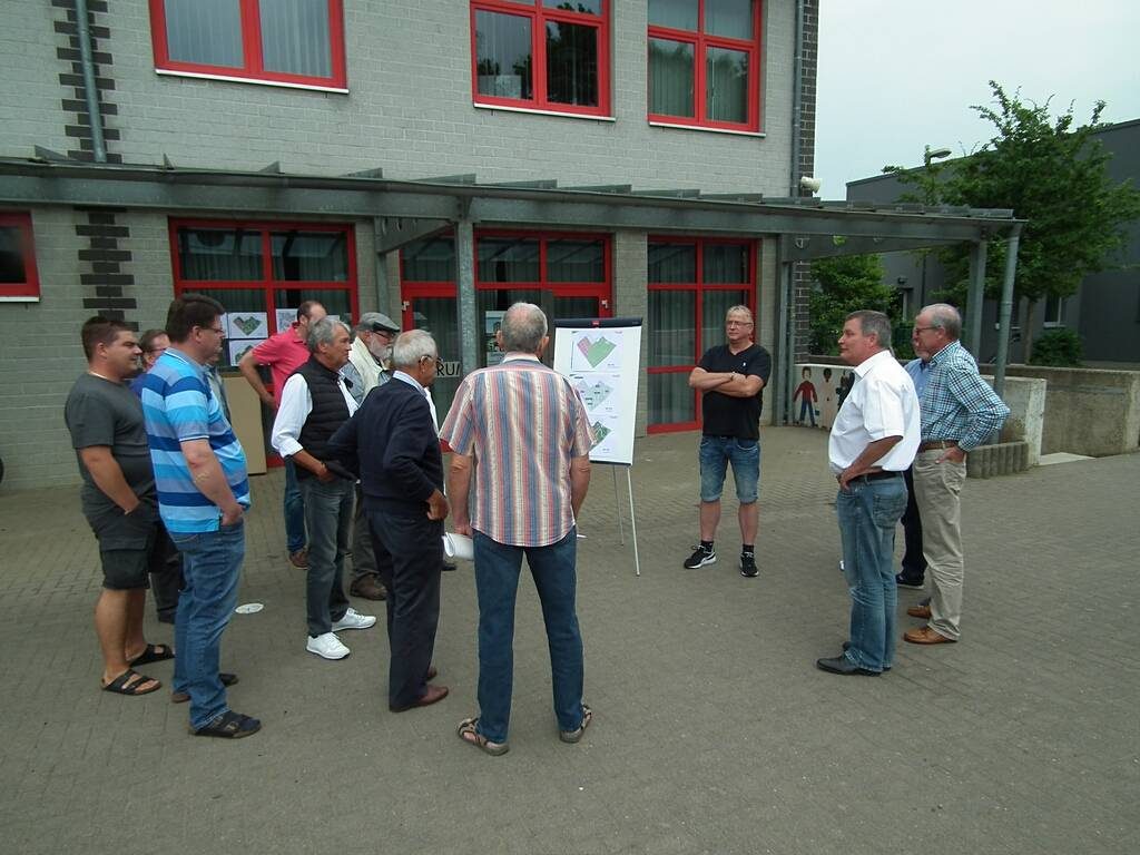 Klaus Ripp als Vorsitzender des Ausschusses erläuterte den Vorschlag der Verwaltung. So sollen nicht nur der alte Sportplatz, sondern auch eine Fläche in Verlängerung der Straße „Im Bungert“ und am Giffelsberger Weg gegenüber der „Ferdinand-Müller-Straße“ bebaut werden. Der Bolzplatz wird südlich des Wirtschaftsweges verlegt und mit einem kleinen Lärmschutzwall von der Bebauung abgetrennt. Die restliche Fläche südlich des Weges wird als Grünfläche gestaltet. Die Fläche des heutigen Bolzplatzes wird etwas verkleinert und bleibt hinter der Mehrzweckhalle als Grünfläche erhalten. Im Rahmen der Bebauung soll auch entlang der Kunibertusstraße am Sportplatz ein Gehweg entstehen.