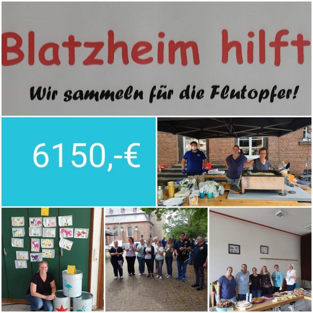 Damit hätten die Initiatoren der Aktion „Blatzheim hilft“ wohl nicht gerechnet. Nach 1.500 Euro am ersten Sonntag und 2.750 Euro letzte Woche waren es heute stolze 1.900 Euro und somit 6.150 Euro, die auf das Konto der „Aktion Lichtblicke“ für die Flutopfer überwiesen werden.