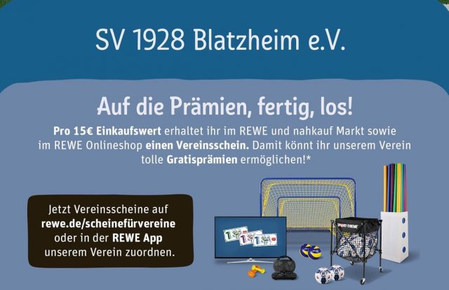 Nach dem TV-Blatzheim beteiligt sich auch der SV-Blatzheim an der Aktion „Scheine für Vereine“ der REWE-Lebensmittelmärkte.
