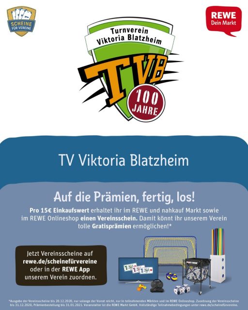 Auch der TV-Blatzheim beteiligt sich an der Aktion. Also beim Einkaufen daran denken, den Vereinsschein dem TVB zuzuordnen oder beim TVB-Vorsitzenden Josef Weingarten oder einem anderen Vorstandsmitglied abzugeben.