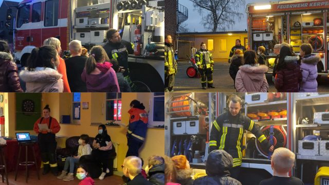 „Selten sitzen unsere Besucher längere Zeit am Stück, um zuzuhören. Hier kamen aufgrund der Bilder und Erzählungen viele Fragen seitens der Kinder auf und es blieb durchweg spannend. Am Ende durften alle, die wollten, auch einmal die Feuerwehrjacke anprobieren. Wir danken der Feuerwehr für ihren Besuch und freuen uns im neuen Jahr auf weitere Blatzheimer Vereine, die aufzeigen, welche vielfältigen Möglichkeiten in Blatzheim bestehen, ein Hobby auszuüben.“