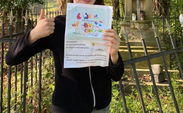 Wie das immer Ostern so ist, wurden nicht alle Ostereier gefunden, die man versteckt hatte. Daher war heute die Aufgabe, zunächst digital auf einer Seite von Blatzheim-Online Ostereier zu suchen. Zu jedem Versteck gehörte ein Bild mit einem markanten Ort in Blatzheim, Bergerhausen, Dorsfeld oder Niederbolheim. Dort musste man mit dem Fahrrad (mit oder ohne Geschwister, Eltern) hin, um in der realen Natur nach einem „Schatz“ zu suchen. Und in allen Fällen gab es eine süße Belohnung, wenn auch erst im zweiten Anlauf, denn – das war gemein – gab es an einem Ort nichts. Bei dem sonnigen Wetter eine ideale Abwechslung in Corona-Zeiten und manch lange Strecke wurde zurückgelegt, denn das Rätsel war nicht immer einfach.