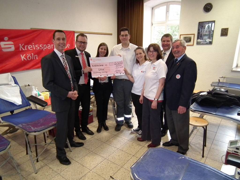 Bei Großschadensereignissen müssen oft viele Menschen versorgt werden. Daher will die DRK-Bereitschaft Blatzheim jetzt einen „Gerätewagen Betreuung“ in Betrieb nehmen. Doch ohne Sponsoren ist das nicht möglich. So freute sich die DRK-Bereitschaft, dass Stefanie Ruland und Torsten Lercher von der Kreissparkasse Kerpen mit einem großen Scheck zur Blutspende ins Kunibertus-Haus kamen, um das Vorhaben mit 2.000 Euro zu unterstützen.