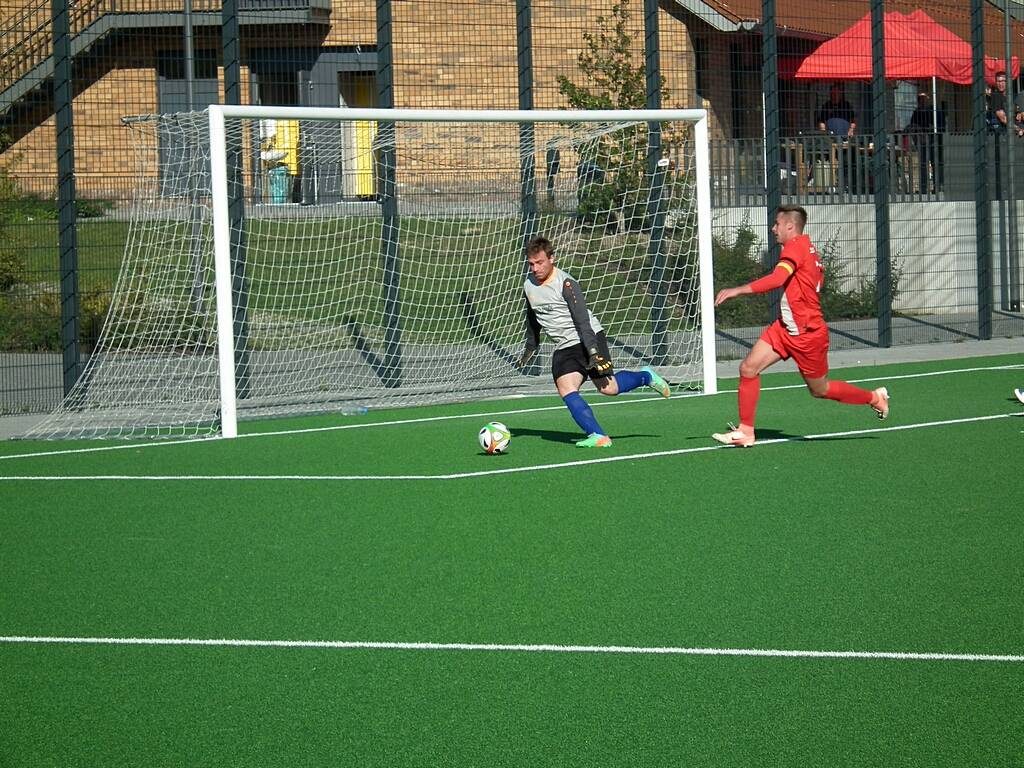 Die erste Halbzeit wurde von beiden Teams äußerst hektisch gestaltet und keine Mannschaft zeigte eine gute Form. Nach der frühen Führung der Frechener konnte Lino Göddenhenrich ausgleichen und Tim Zierfuß die kurzzeitige Führung erzielen. Nach dem Ausgleich war es wieder Tim Zierfuß, dem mit einem verwandelten Elfmeter die 3:2 Pausenführung gelang.