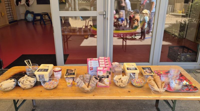 Das war eine tolle Überraschung auf dem Außengelände. Der Förderverein der Kita Rasselbande hatte die “süße” Idee, den Kids so kurz vor den Sommerferien ein farbenfrohes Eis zu spendieren