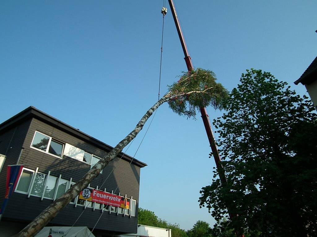 Unterstützt durch die musikalischen Klänge des Tambourcorps Edelweiß stellte auch in diesem Jahr die Freiwillige Feuerwehr wieder einen stattlichen Maibaum mit einer Höhe von 21 Metern am Feuerwehrgerätehaus auf.