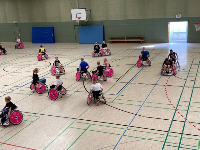 „Jetzt können wir erst beurteilen, was für eine Leistung die Rollstuhlbasketballer erbringen!“ meinte Julia Weingarten, die als Trainerin der Tigers tätig ist und eifrig mit dabei war.