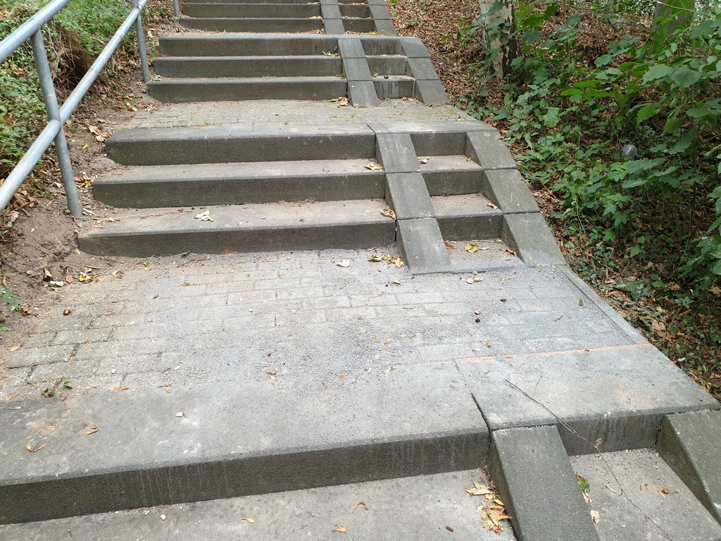 Die Nutzer der Treppe zwischen Neffelbach und Rosenpfad freuen sich. In dieser Woche erfolgten ein Grünschnitte und abgesackte Stufen wurden saniert.