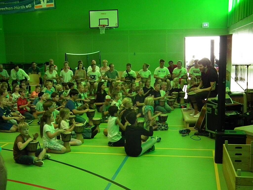 Ein solches Erlebnis hat es bei den Blatzheimer Ferienspielen noch nicht gegeben: Eine Trommel-Abenteuerreise um die Welt. Mario und Chris von der Argandona-Trommelwelt begeistern in den zwei einstündigen Proben nicht nur die Kinder und das Betreuerteam, sondern auch die Eltern beim abschließenden Konzert.