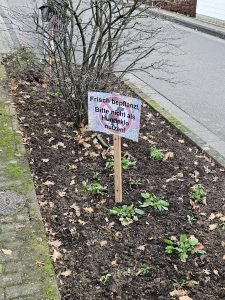 Ein Staudenbeet und viele Blumenzwiebeln sollen im kommenden Jahr das Blumenbeet im Domkauler Weg in der Nähe der evangelischen Kirche zieren und immer für etwas „Blühendes“ sorgen. Die Hundehalter werden gebeten, das Beet nun nicht mehr als Hundeklo zu nutzen.