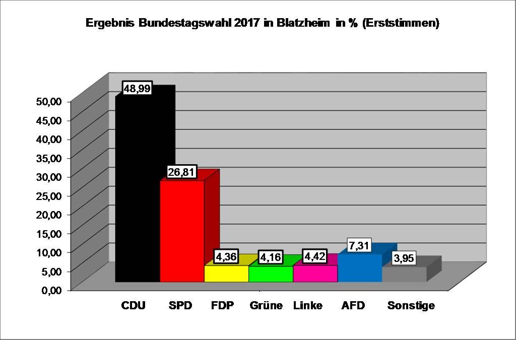 Wenn man die Briefwähler mit berücksichtigt, lag die Wahlbeteiligung in Blatzheim bei etwa 80%. Die hier angegebenen Ergebnisse sind ohne Briefwähler, da die Briefwähler gemeinsam mit Buir und Manheim ausgezählt wurden und daher nicht zugeordnet werden können.