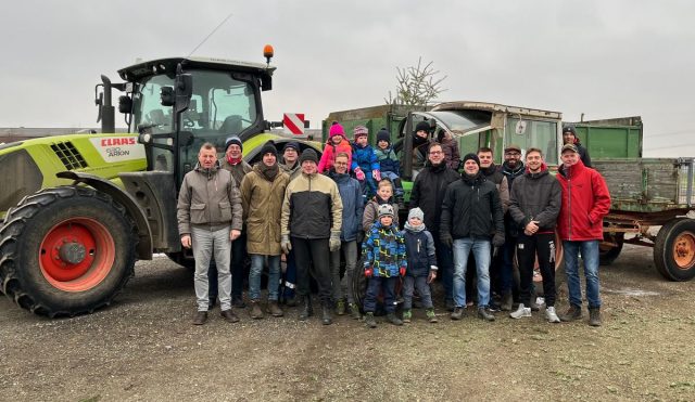 In drei Teams waren 26 Helferinnen und Helfer von 4 bis über 60 Jahren mit drei Traktoren unterwegs und holten in Blatzheim und Bergerhausen rund 300 ausgediente Weihnachtsbäume ab, die anschließend in ein Müllfahrzeug gepresst wurden, um sie der Kompostierung zuzuführen.