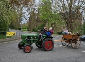 Die Verpflegung im Ort ließ keine Wünsche offen, Reibekuchen, Würstchen Pommes, Waffeln und Kuchen gab es an vielen Stellen. Die zentrale Verpflegungsstation beim DRK freute sich über regen Zuspruch und der mobile WC-Container des DRK, der über das LEADER-Projekt gefördert wurde, konnte offiziell „eingeweiht“ werden. Zur Freude der Kinder war Büb mit Trecker und Pferdekutsche unterwegs.