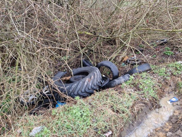 Die Umgebung des Kreisels am Katharinenhof verkommt immer mehr zur Mülldeponie. Erneut haben Unbekannte dort Autoreifen und anderen Müll entsorgt.