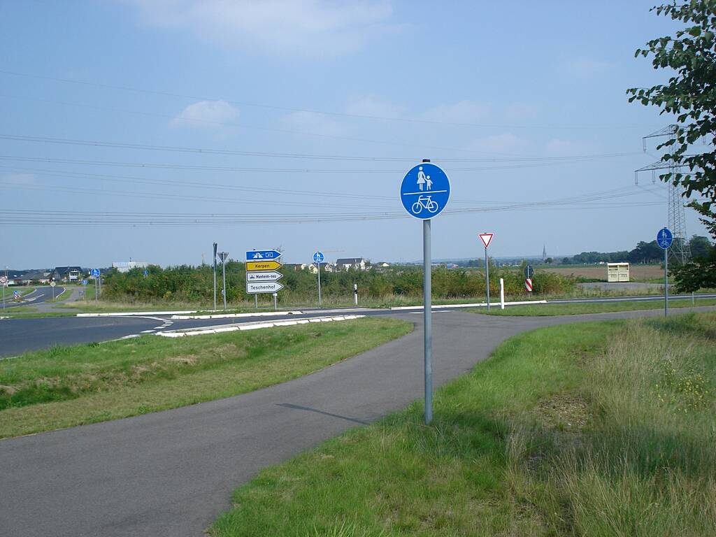 Wie Anlieger berichten, fahren viele ortsunkundige Radfahrer am Kreisel Bergerhausen rechts und wissen im Wendehammer der rückgebauten ehemaligen Ortszufahrt nicht mehr weiter und fahren dann über die vielbefahrene Kreisstraße K55 weiter nach Kerpen.