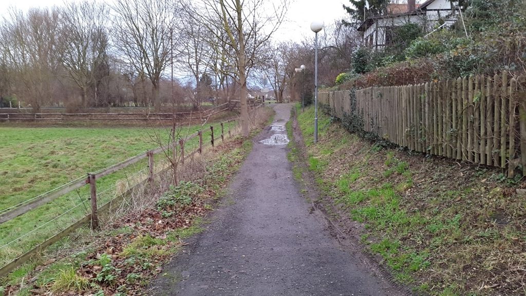 Der Verbindungsweg zwischen Kunibertusstraße und “In der Au”, der sehr stark von Fußgängern und Radfahrern genutzt wird, ist mittlerweile sehr stark verschlammt und kaum noch begehbar.