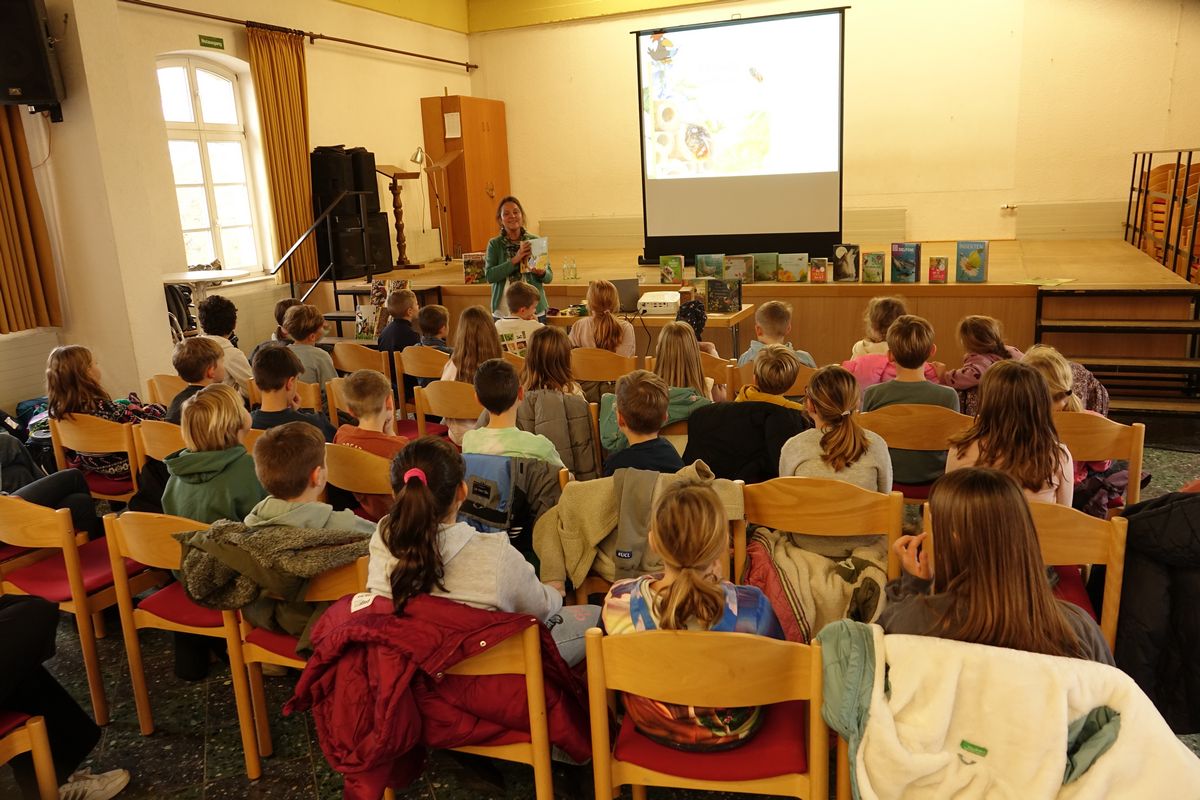 Im Rahmen des Projektes „Kleine Naturhelden – Lesen, basteln und forschen für den Artenschutz“ war jetzt die Autorin und Biologin Bärbel Oftring in Blatzheim und stellte ihr Buch “Ich bau dir ein Haus kleine Wildbiene” vor.