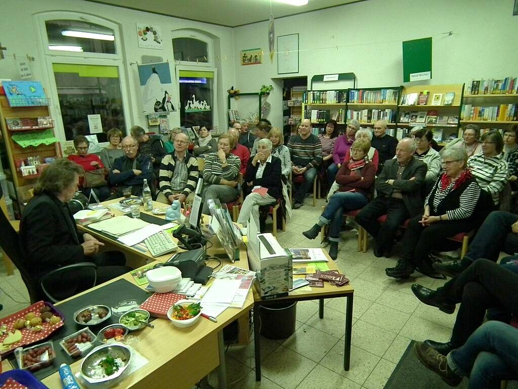 Es wurde sehr eng in der Bücherei, denn viele Besucher nutzten die Gelegenheit und folgten der Einladung der „Buchstützen Blatzheim“, um die Herkunft der Wörter zu erfahren, die sie heute teilweise noch in der Umgangssprache nutzen.