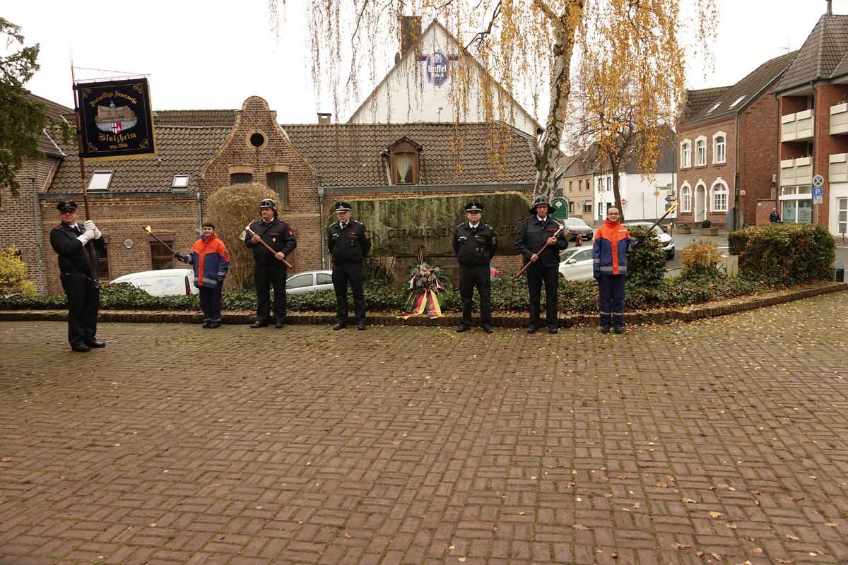 Mit der Verlesung des traditionellen Totengedenkens, der Kranzniederlegung am Ehrenmal und Gebeten von Pfarrvikar Franbz-Josef Pitzen, umrahmt vom Spiel des Tambourcorps Edelweiß Blatzheim endete die Gedenkfeier, die auch in diesem Jahr wieder unter sehr starker Beteiligung von (Jugend-)Feuerwehr, DRK, Schützen, Tambourcorps und weiteren Vereinsvertretern und Gottestdienstbesuchern stattfand.