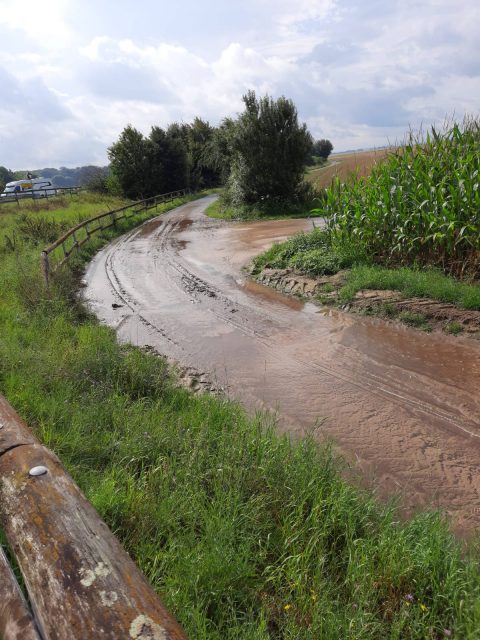 Beim letzten Starkregen war der Weg überflutet worden und Erde von den Feldern ist auf dem Weg geblieben.
