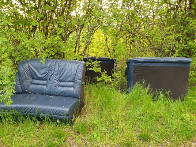 Möglicherweise wollte jemand eine zusätzliche Rastmöglichkeit für die vielen Spaziergänger am Weg in Richtung Niederbolheim schaffen und hat seine Couch-Garnitur in der Nähe des Grillplatzes abgestellt. Besser wäre es aber gewesen, den normalen kostenlosen Sperrmüll zu nutzen, anstatt so die Stadt mit der Entsorgung zu beauftragen.