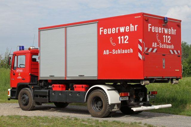 (DE) Beim Löschzug Blatzheim sind zwei kreiseigene Abrollbehälter stationiert, welche im Einsatzfall mit dem Wechsellader des Löschzuges sowie durch die Blatzheimer Feuerwehr in den Einsatz gebracht und dort eingesetzt werden. Zum einen befinden sich auf dem Abrollbehälter Schlauch unter anderem rund 2 km Schlauchmaterial sowie zwei Tragkraftspritzen. Auf dem Abrollbehälter Schaum befinden sich unter anderem mehrere tausend Liter verschiedener Schaummittelarten. Beide Container waren in den letzten Tag im Einsatz.