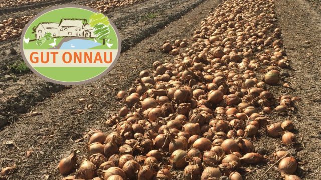 Gut Onnau lädt am Donnerstag, 19.10.2023, ab 14:30 Uhr auf dem Zwiebelfeld hinter Gut Onnau an der K54 zur Zwiebel-Nachernte ein.